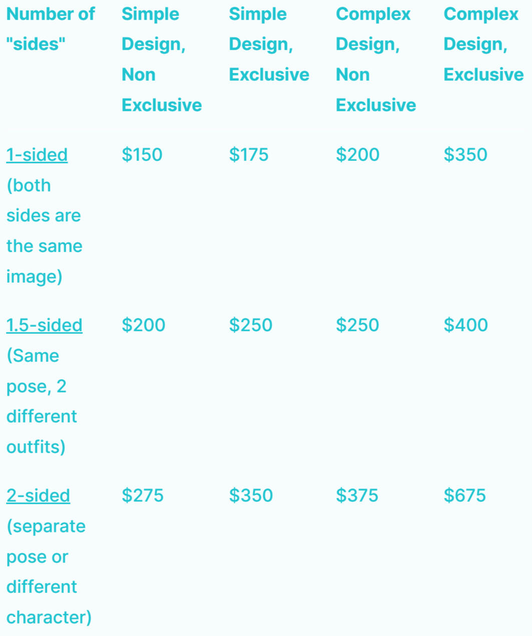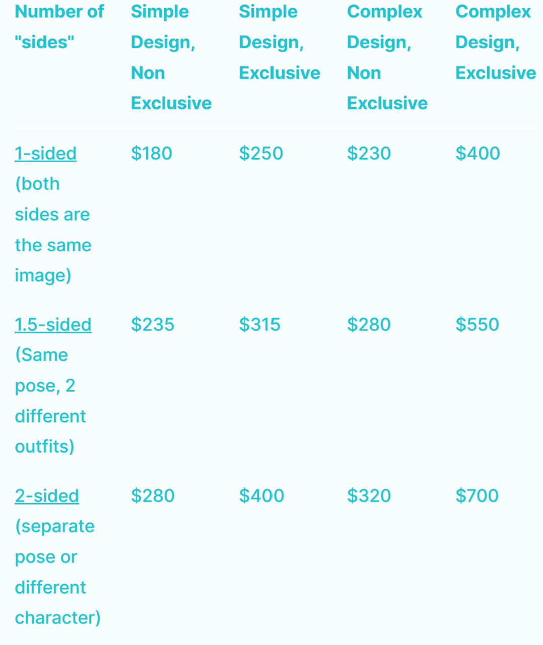 INCLUDES One (1) standee and one (1) full-res jpeg of the artwork, front and back.$80 for 1 character,